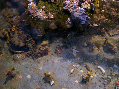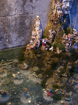 It is very good to be back on the Amalfi Coast after a wonderful trip visiting my family and friends in America over the holidays. The Christmas decorations are still up in the cities along the coast, and I have been enjoying seeing many them for the first time. While walking in Amalfi last weekend, I found a lovely nativity scene in a small fountain in the Piazza dello Spirito Santo. This fountain, made in the 18th century of volcanic stone, has two faces carved in marble where the water comes out. Below each of these spouts, there was an elaborate nativity scene that continued under the water in the fountain, as you can see below.